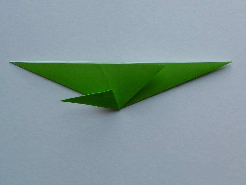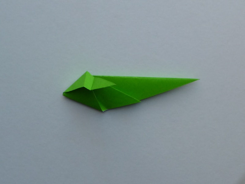 21. Flip your design over and fold the end of the tail up vertically. Unfold.