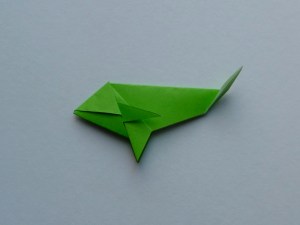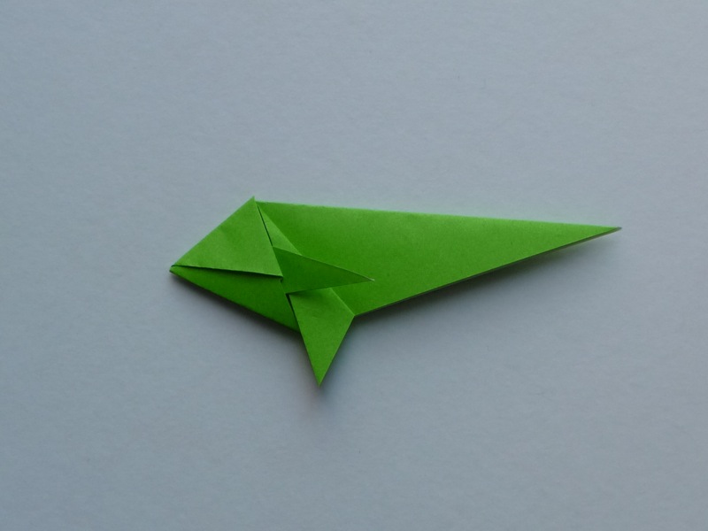24. Fold the top point down. You have now completed your fish. Use your hole punch to make an eye.