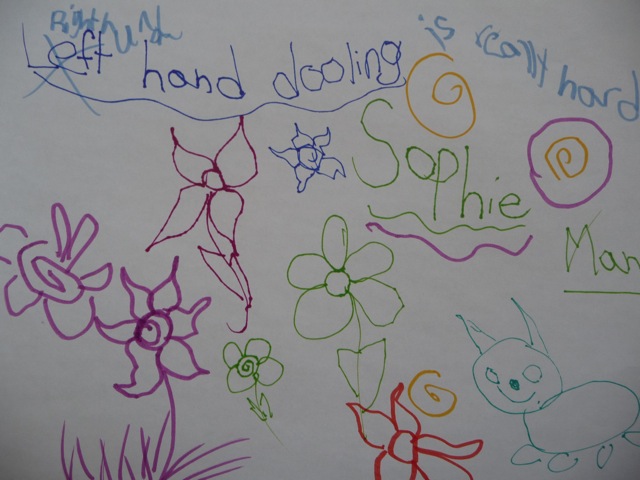 1. Explain to children that most people have a dominant hand, the one they feel more comfortable doing things with, such as writing or picking something up. Have them determine if they are right handed or left handed, then instruct them to use their non-dominant hand for drawing.
