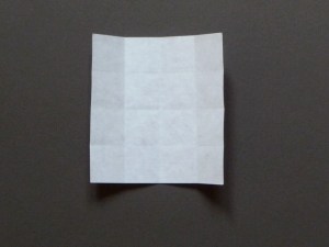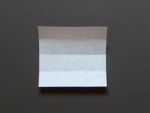1. The first step requires a 3 x 3 grid of squares. To make this, take a 6" x 6" piece of paper, white side up, and fold in half horizontally. Open.