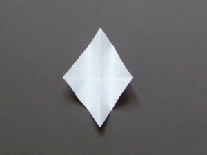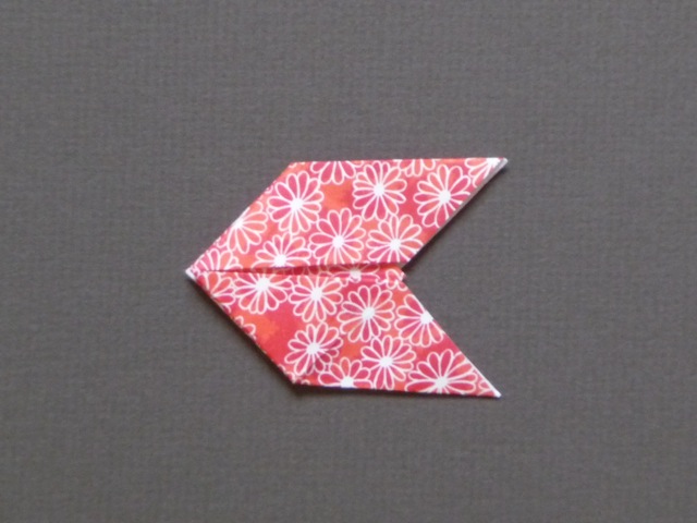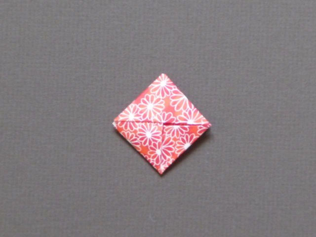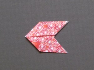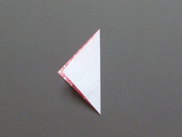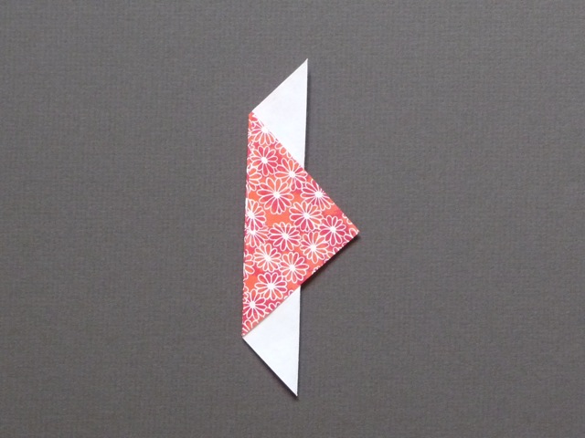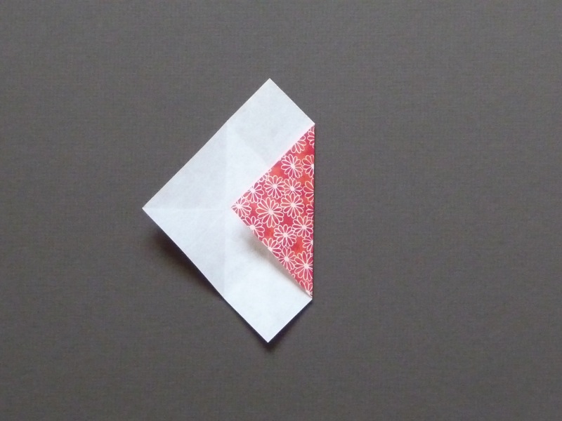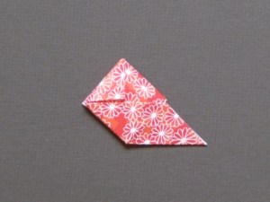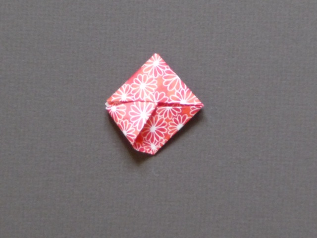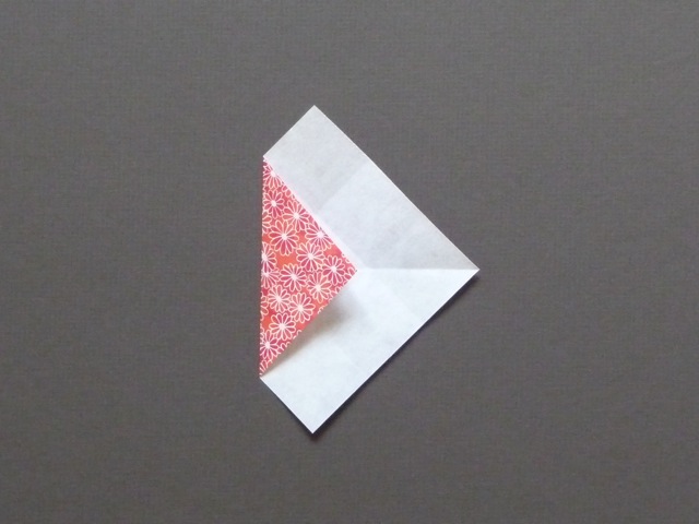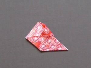 16. Turn over and valley fold the lower corner, tucking it into the upper pocket.