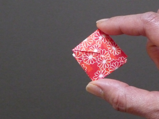 For those who can’t remember grade 6 math (and we are a rather large group), a hexahedron is a six sided three dimensional geometric figure. The snap part refers to the very cool final step in folding, which brings this lovely shape to life. Now if only it had a chocolate inside.