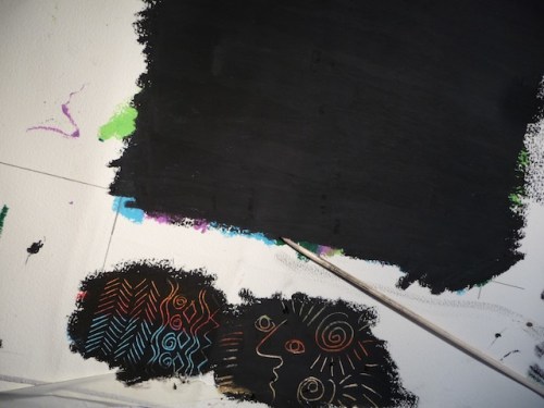 In my previous post, the art of sgraffito was explored with the use of plaster. Here’s a simple variation using oil pastels.