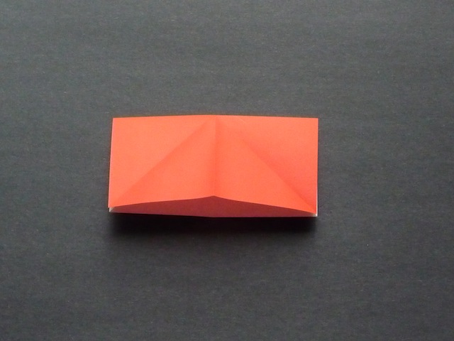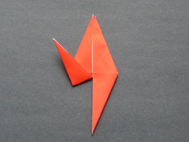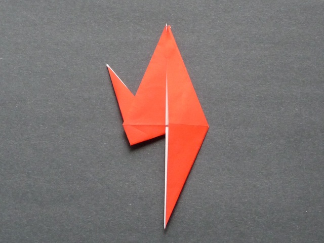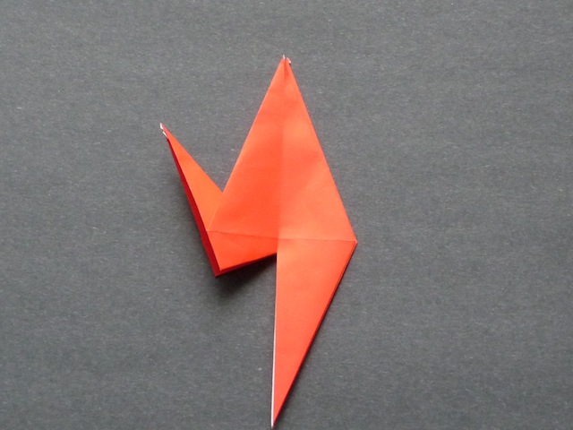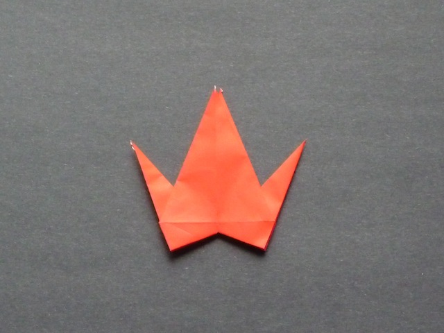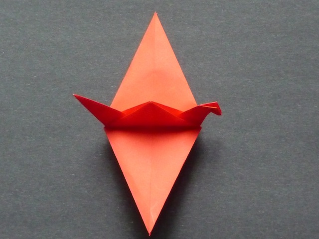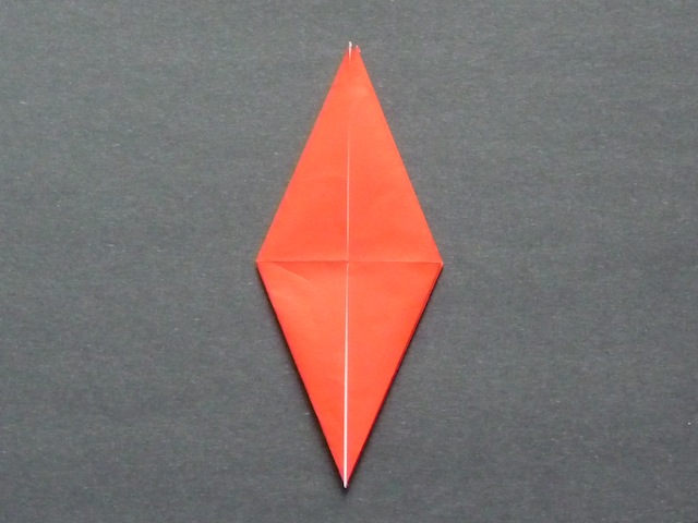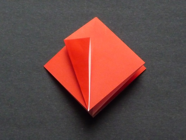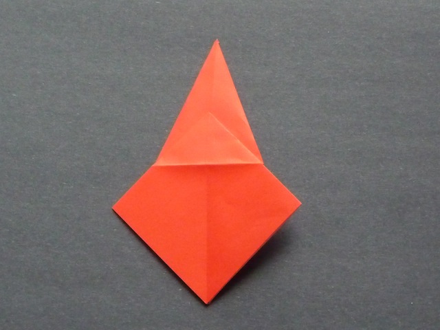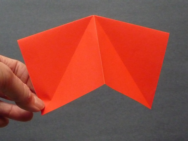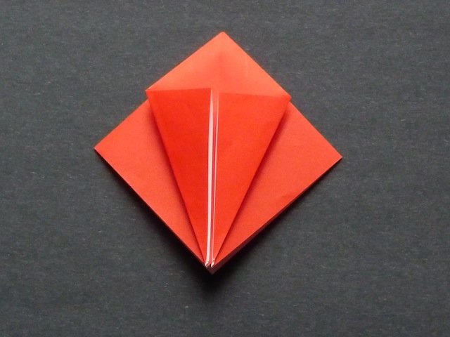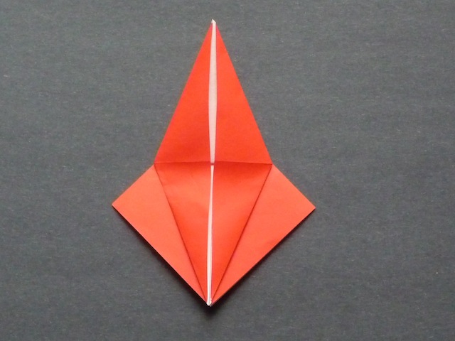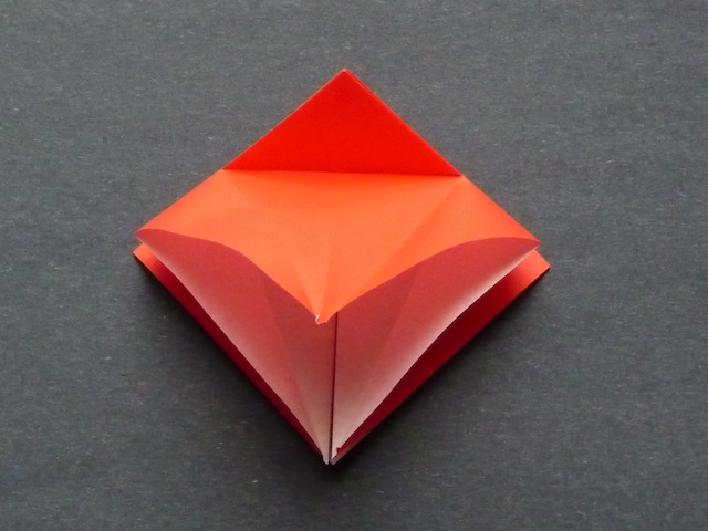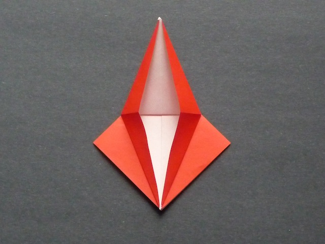 17. Reverse fold each lower point. Do this by taking one side and folding it in front, making sure to begin slightly below the centre point of the diamond. Crease firmly and unfold.