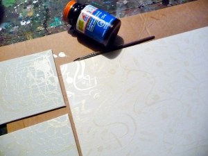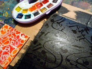 4. Now’s the best part. Once the paint has dried, you get to gently rub off the rubber cement using your fingers…actually the thumb seems to work best… and watch the magic slowly happen.