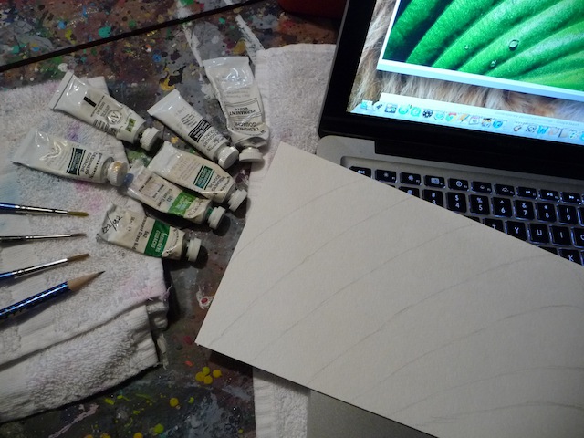 Thick watercolour paper is a great choice for this project because it can withstand lots of paint without buckling. Use a pencil to draw the basic shapes which will be filled out.