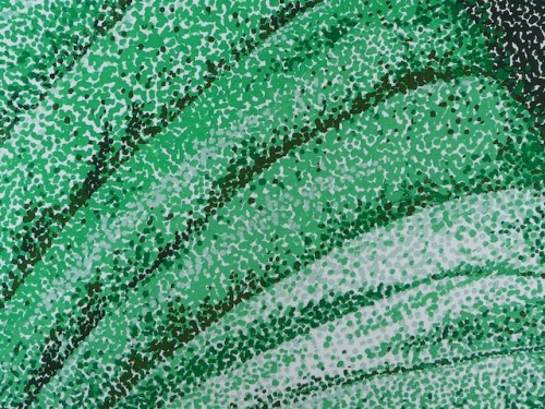 These dots or strokes can be placed in organized rows or randomly. They can be overlapping, like in Seurat’s A Sunday On La Grande Jatte, or they can be distinct with space around each one, like in Atomic #2 by General Idea (see photos below).