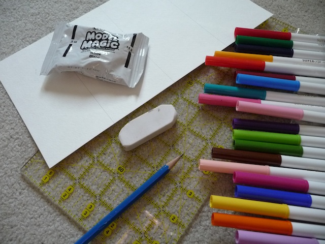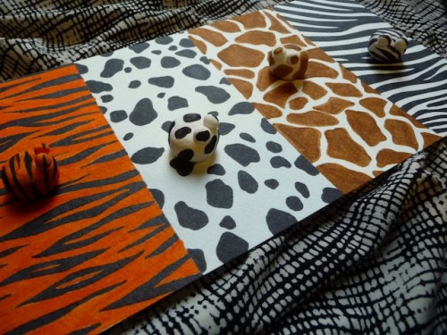 2. Have children draw four different patterns or textures on card stock. Colour them with markers. It’s best to keep them simple since they will be copied onto their Model Magic creatures.
