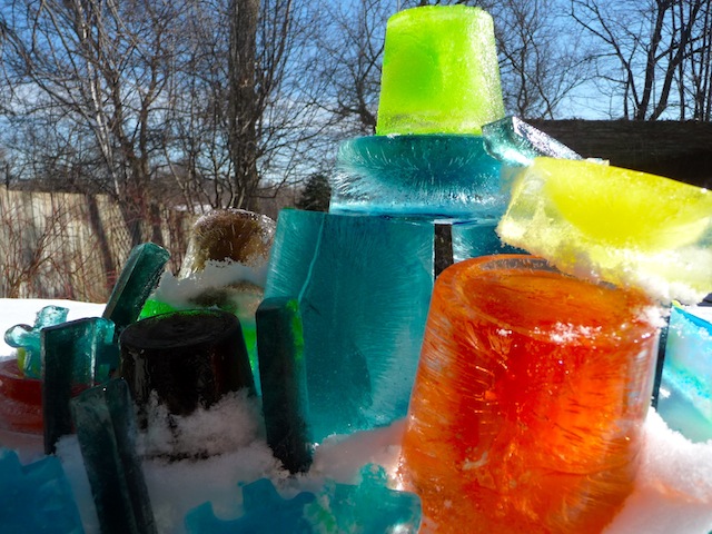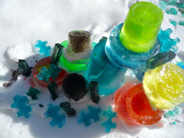 14. You really have some interesting containers. I bet the kids had fun playing with the colored ice and also liked watching it melt.