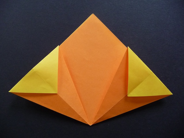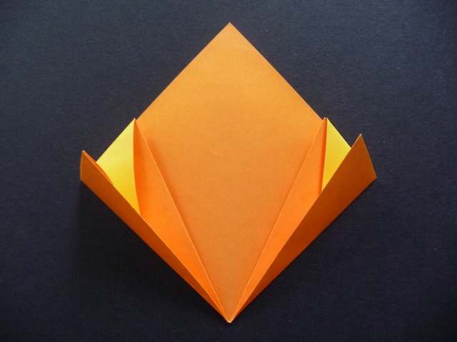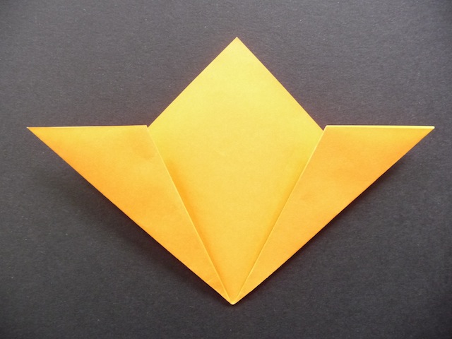 9.Valley fold the top part so the point aligns with the centre crease.
