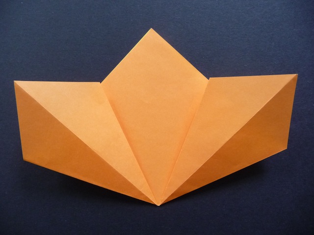7. Unfold and open up one side. Flatten and crease well.
