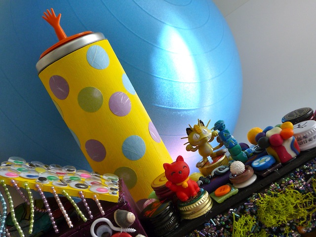 3. Time to decorate. You can either pick a theme, or combine anything that strikes your fancy. This is an ideal project to showcase all those left over supplies from craft kits, as well as recycled items like buttons,  bottle caps, and nuts and bolts. Then there are all those little treasures just waiting to be displayed like polymer clay designs you made a while back, those sea shells you saved from your beach visit, or little plastic characters from one of your favourite games or shows.