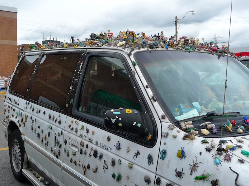 You can’t help but marvel at the idea of personalizing a vehicle to this extent, and admittedly, I’m a wee bit jealous. But car leases being what they are, my vehicle will have to be returned with no bugs attached. The Art of Bugs van is a fixture in midtown Toronto, and I’ve been catching glimpses of it for years. It’s owned by Albino Carreira, whose wonderful work began, following rehabilitation from a very serious accident. While he can no longer work, Albino has managed to channel his energy into embellishing both his car and home, which has proven to be a very fulfilling pastime, judging by the results. Suddenly, the pergola in my backyard is looking rather boring, and could probably use a bug or two to help it along.