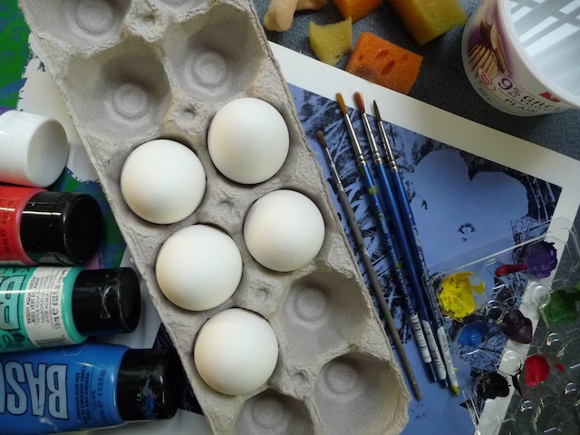 1. If you choose the hard boiled egg route, allow the eggs to cool overnight, and keep them at room temperature for painting. Keep in mind these eggs cannot be saved, since they will undoubtedly become mighty smelly.