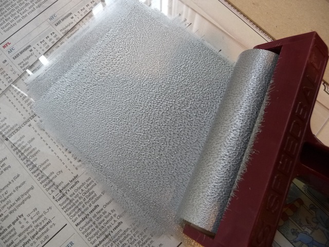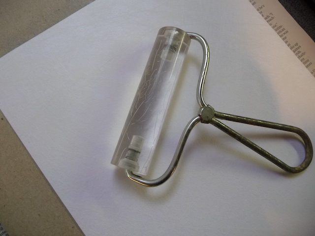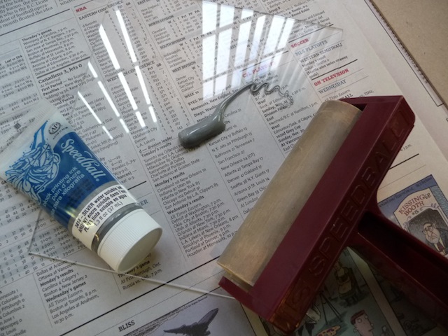 Use a soft rubber brayer and roll over the paint, making sure to go in all directions. Continue until the paint is spread out evenly, and the brayer is also evenly covered with ink.