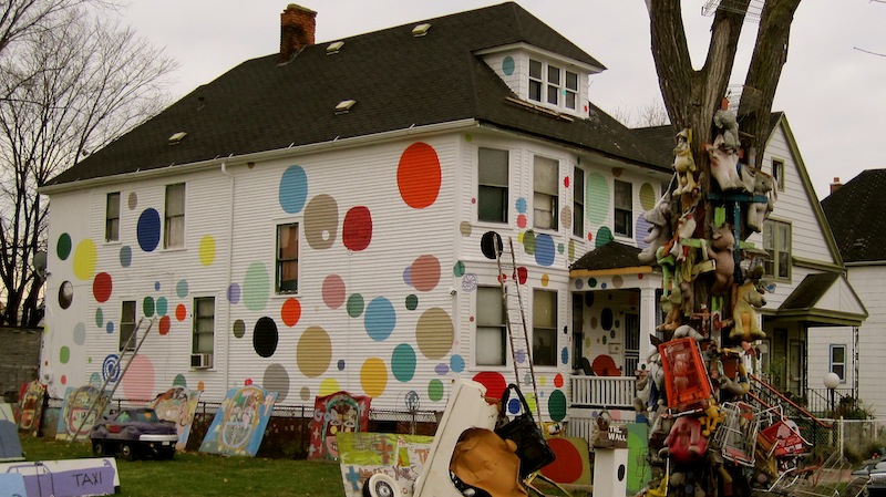 Artist, Tyree Guyton, has used art to breath new life into the run down, impoverished Detroit community of McDougall-Hunt. Since 1986, he began transforming vacant houses with recycled materials, found objects and paint. Other artists and community members