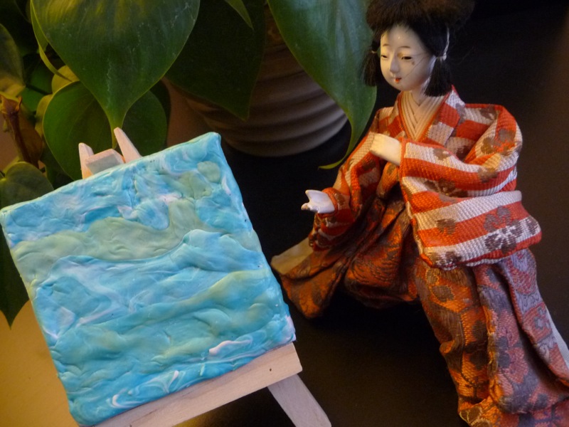 Of course this is all Jason Kronenwald’s fault, an artist who uses gum as his medium of choice. He had a show in Toronto a few years ago, exhibiting his series of Gum Blonde portraits of famous blonde starlets. The idea seemed unique and impressive at the time. So much so that I gathered my kids, drove to the nearest Walmart, and bought a crap load of gum for all of us. For a brief moment, I was the coolest mother on the planet. For the sake of art, I was asking my children to chew gum, as much as they wanted, with or without sugar, as long as we had a decent palette to work with. Then the ick factor set in. It’s one thing to chew the stuff, it’s quite another to store saliva laden globs of gum for weeks on end. We became so grossed out by the process, we gave up and joyfully tossed our chewed bits away. Upon reflection and sad to have been defeated by a bit of saliva, I realized scale was the problem. This guy’s work is done on huge pieces of plywood which inspired us to aim big as well, instead of doing the opposite. So this project aims small. Miniature canvasses are used, which means commitment to chewing and storing is shorter, and the ickiness becomes acceptable. Plus it was fun.