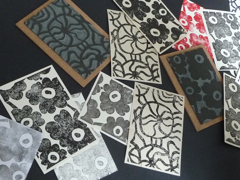 I’ve loved Marimekko fabrics since highschool, when I purchased a wonderful black and white striped fabric to make pillows for my room. Their bright, bold graphics were stunning, and unlike anything I had seen. So of course I was thrilled to see Marimekko, With Love, currently on at The Textile Museum Of Canada. Room after room of fabrics, products and images tell the story of the company’s history and its recent revival, teaming up with the likes of Crate and Barrel, Converse, and Finnair planes, where their iconic poppy can be seen flying through the sky. There’s a wonderful simplicity to their designs, which makes them ideal for exploring the linocut printmaking technique.