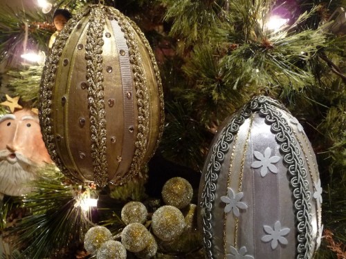 Remove all thoughts of that cheesy perfume from the seventies and think eggs, exquisite, luxurious Russian made eggs. Peter Carl Fabergé was a famous Russian artist-jeweller, and the creative genius behind the House of Fabergé, makers of fine jewelry, accessories and silverware. His immense talents came to the attention of Tzar Alexander III, who appointed him goldsmith and jeweller to the Russian Imperial Court. A commission for an Imperial Easter egg soon followed, and because of its impressive design, technical innovation and craftsmanship, lead to the commission of others. These luxurious eggs were considered masterpieces made with precious metals, gem stones and enamel. Some even opened up to reveal surprises in the centre like miniature carriages or ships. Today, they are considered some of the most important art treasures ever made, and serve as the perfect inspiration for making ornaments.