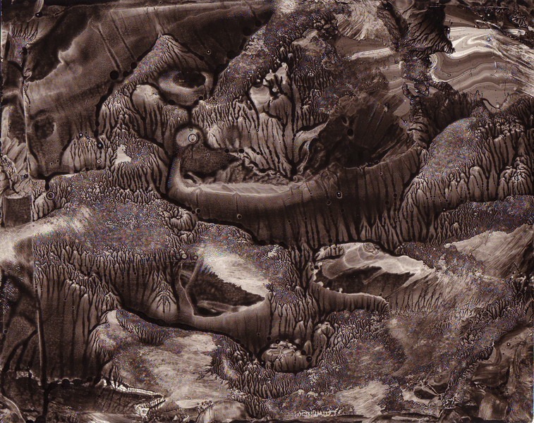 As I explored the Whitney Biennial’s offerings for 2010, I came across the work of Roland Flexner. He is a French artist living in New York, and creates the most amazing imaginary landscapes using the ancient Japanese art of marbling, or suminagashi. This practice dates back to the 12th century, and involves floating ink on water or gelatin, and blowing on it to achieve a marbled effect.