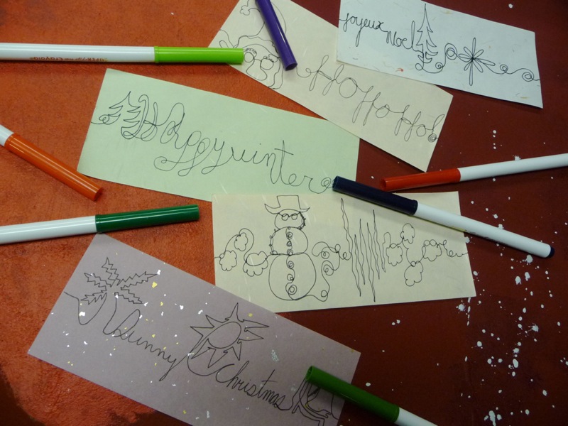 Have a look around you and notice the way things are written. Look through a magazine or newspaper, the covers of books, CD’s, or the many products in your kitchen. See how the letters on the newspaper’s front page look quite serious, but those on a children’s cereal box convey fun and are usually accompanied by a little character who beckons you to bring it home. Nothing is random about the design of the words on these products. Their shape, colour, size, spacing have been deliberately thought out to convey information and emotion. This is the world of typography in the field of graphic design. Why not try your hand at designing your name to convey a bit of information about you, like your favorite colours, music, whether you’re more playful or serious…you get the picture.