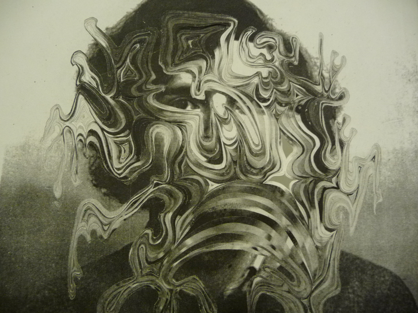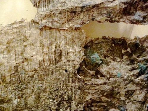 Abby McGuane created an interesting marbling effect with her collaged black and white inkjet prints. Slightly different sized holes were cut in superimposed copies of the same image, thus creating the marbling effect. Unfortunately, the depth of these spaces doesn’t really come through in the photograph. It really was neat.